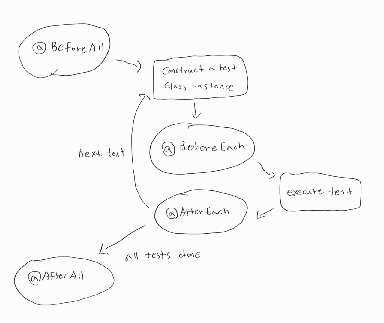 다만 작성한 글에는 @Test로만 테스트 코드를 작성했는데, 실제로 테스트가 실행될 때 우리는 이 생명주기가 어떻게되는지를 정확하게 알 필요가 있다.