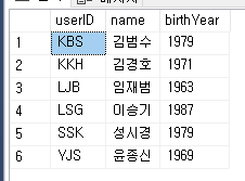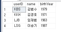 이렇게 하면 결과는 김범수~ 이승기 까지 4개 만 조회가 될것이다.