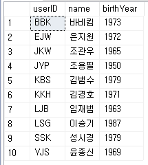 SELECT userID, name, birthYear FROM UserTbl ORDER BY userId;