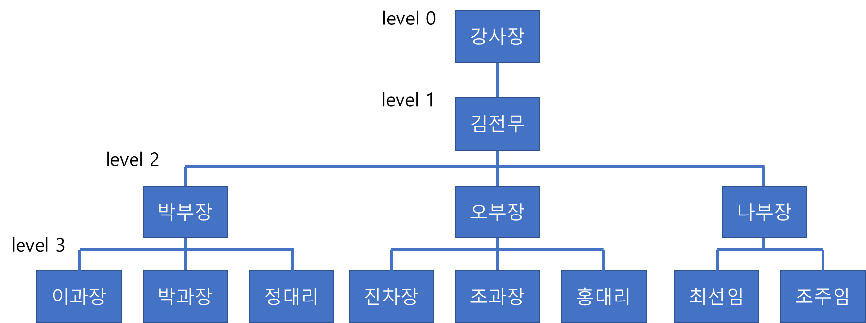 아래 조직도를 보자. 이것은 한 회사의 직급 조직도를 나타낸 것이다