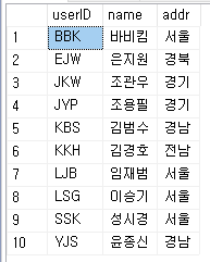 총 10명의 회원정보가 있다.