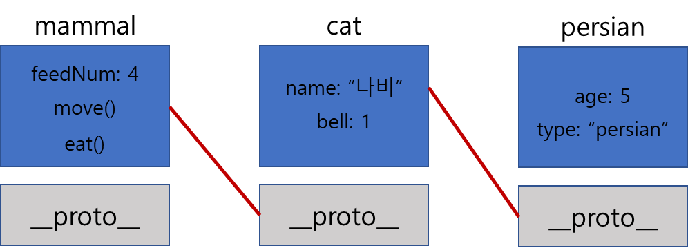 위의 persian 객체까지 그림으로 표현해보면 아래와 같이 표현될 것이다. 이를 프로토타입 체인이라 부른다.