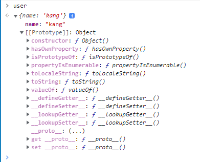 user 라는 객체를 생성해서 내부를 보면 Prototype이라는 것이 보인다.