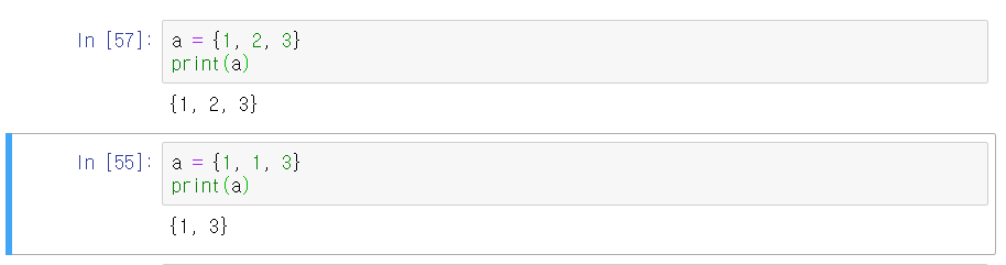 set은 순서가 없고 중복되지 않는 값들에 대한 집합이다. set은 중괄호를 사용해 만든다.