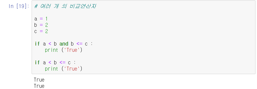 또 파이썬은 신기하게 여러 개의 비교연산자를 붙여서 사용하는 것도 가능하다.