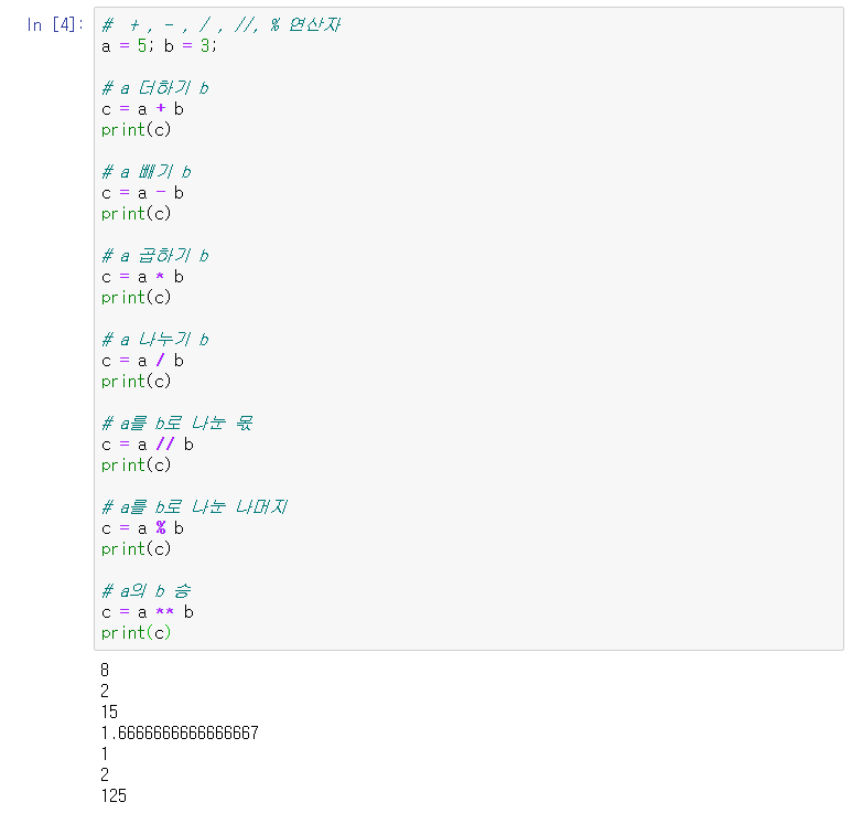 2. 수치형 타입 ( 정수, 실수, 복소수 ) 에서 사용하는 연산자