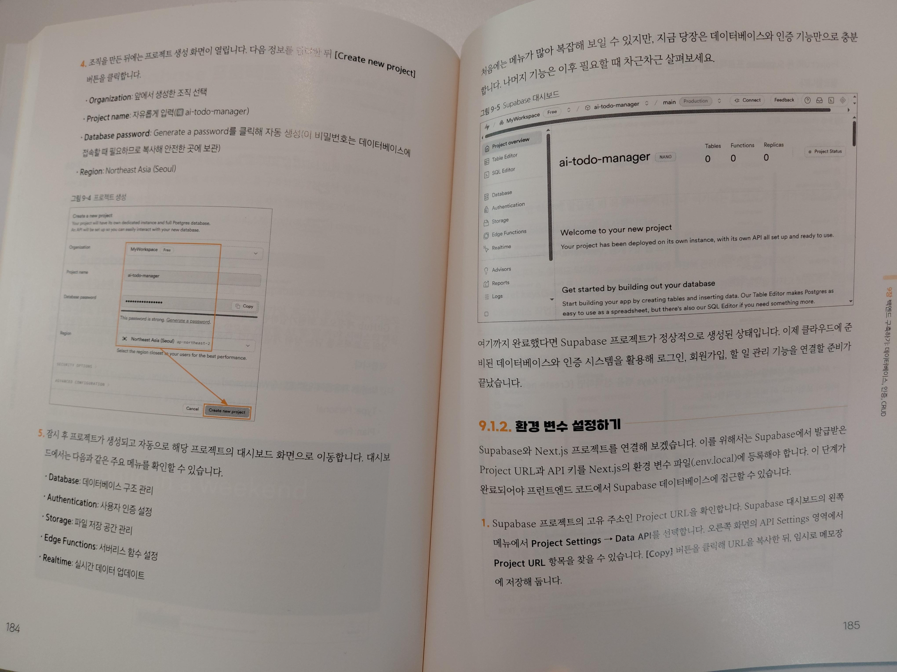 Supabase 프로젝트 생성, 환경 변수 설정, 데이터베이스 구성까지... 처음 접하면 당황스러울 수 있는 과정들을 실제 화면 그대로 보여주면서 "여기를 클릭하세요", "이 값을 입력하세요"라고 친절하게 안내합니다.