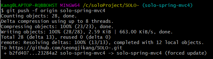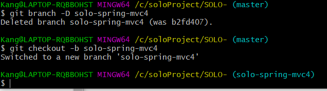자 여기서 기존에 있었던 solo-spring-mvc4 브랜치를 삭제하고 새로 만들어주자 .