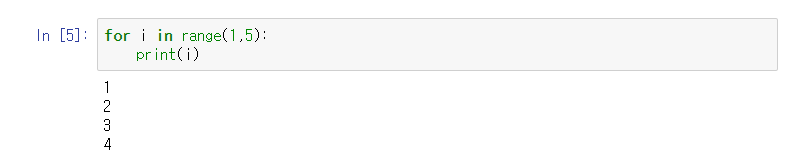 이렇게 파라미터를 넣어주면 1부터 5 전 까지, 즉 4 까지라는 의미가 된다. ㅎㅎ 쉽지?
