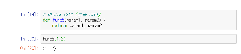 두개 이상도 리턴이 된다 ! 리턴값은 이전에 우리가 배웠던 튜플형태로 리턴이 된다.