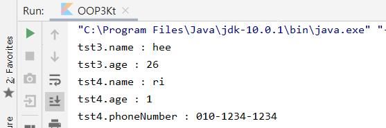즉 , name , age 는 디폴트 생성자를 이용해서 변수 값을 할당해주고 , phoneNumber만 추가 생성자의 파라미터에서 값을 할당해주는 것이다.