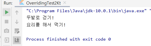 이렇게 Animal 에 있는 기능은 Person에서 재정의해서 사용될 수 있다. 이 소스를 돌려보면