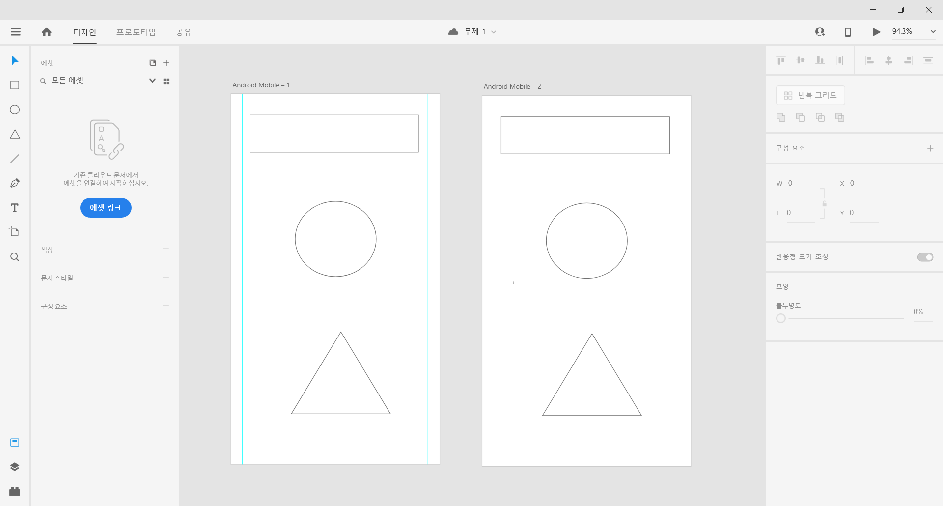 오늘은 일단 쉐이프 ( 모양 ) 그리는 것 만 해봤다 .. 다음에 올릴 포스팅은 실제로 디자이너들이 사용하는 기술에 대해 공부해볼예정이다.