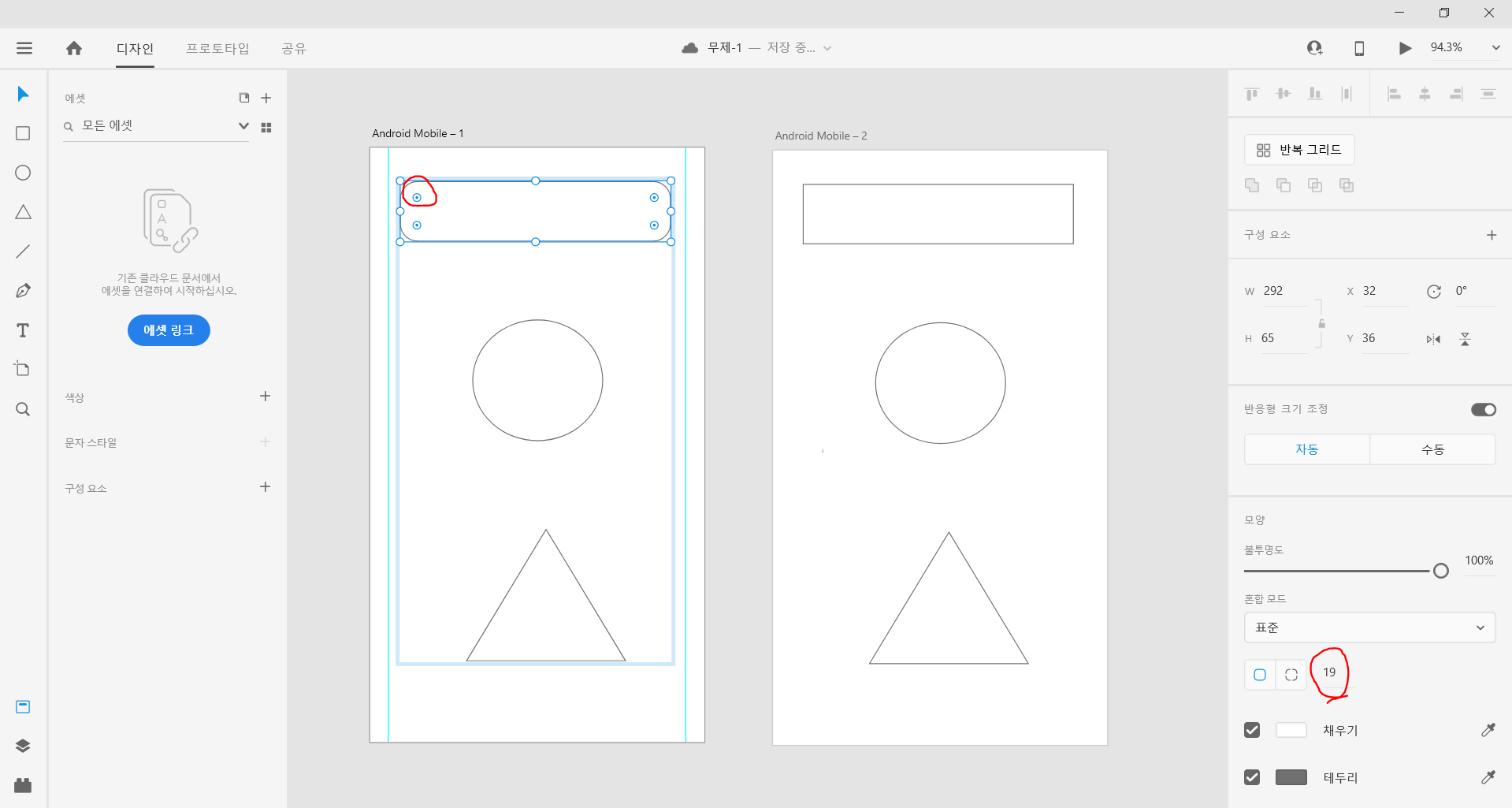 도형의 각 모서리를 쭉 드래그하거나 우측의 설정 창에 수치를 변경해서 radious 값을 변경할 수 있다.