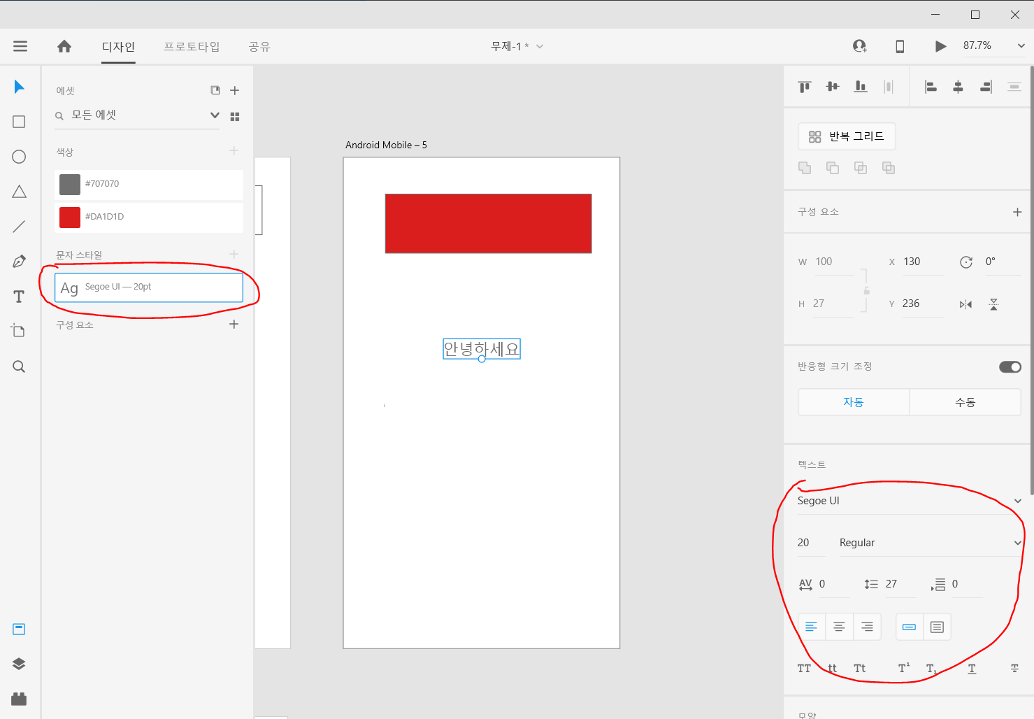 오늘 처음 다뤄볼 내용은 Asset 이다. Asset은 공통적으로 들어가는 색상이나 텍스트, 구성요소를 저장해서 사용하는 걸 의미한다.