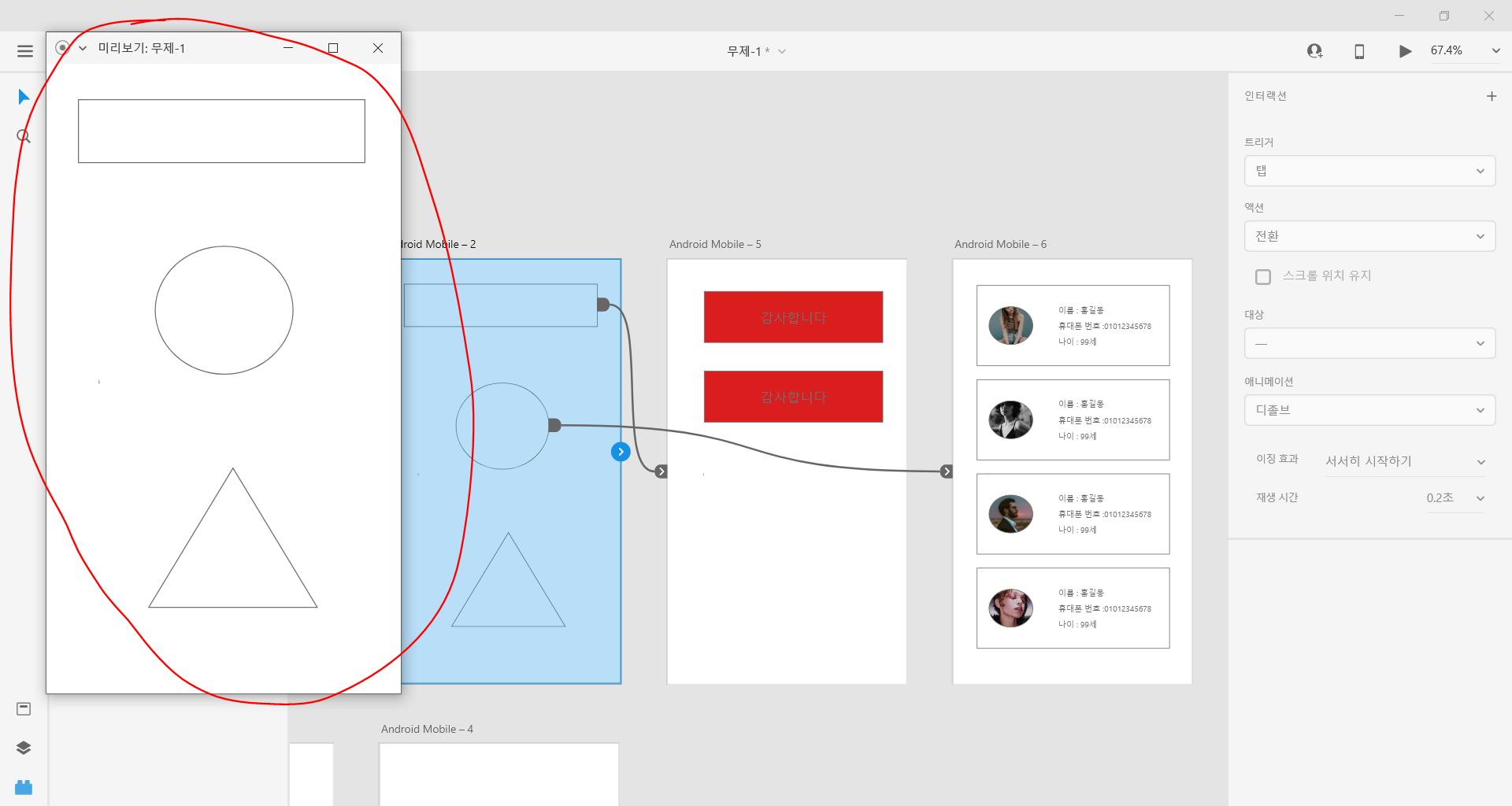 그리고 프로토 타입 탭에서 서로 연결을 하고 위와 같이 설정을 해주자.