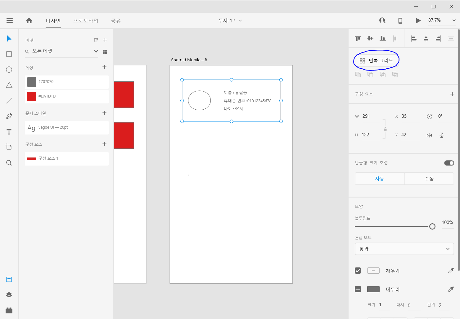 만들고 난 뒤에 우측 상단에 반복 그리드를 클릭하면 ..
