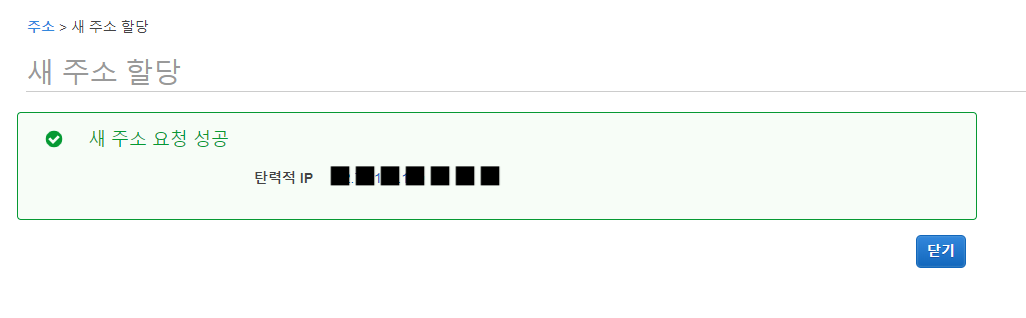 할당을 눌려주면 Elastic IP 가 할당이 된다.