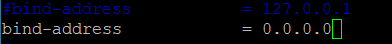 여기서 바꿔줄 건 간단하다. 기존에 bind-address 가 127.0.0.1(localhost) 로 되어 있는데 이 값을 0.0.0.0(any) 로 바꿔주는 것이다.