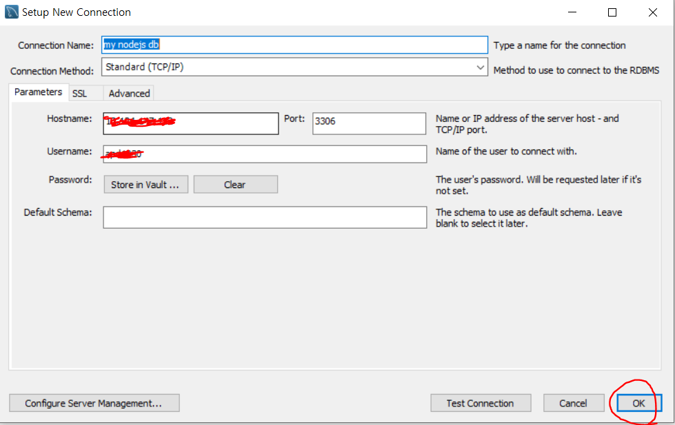 그리고 나서 연결할 정보를 입력해주고 ok를 눌려주면 끝이다. Hostname에는 ec2 인스턴스의 IPv4 퍼블릭 IP 를 입력해주면 되고 Username은 아까 우리가 만들었던 계정명을 입력해주면된다. 이렇게 까지 해주고 나면