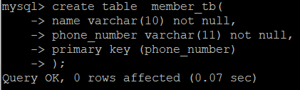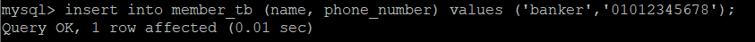 마지막으로 데이터까지 하나 넣어주면 !! 오늘 실습할 db 구축 끝!! ㅎㅎ