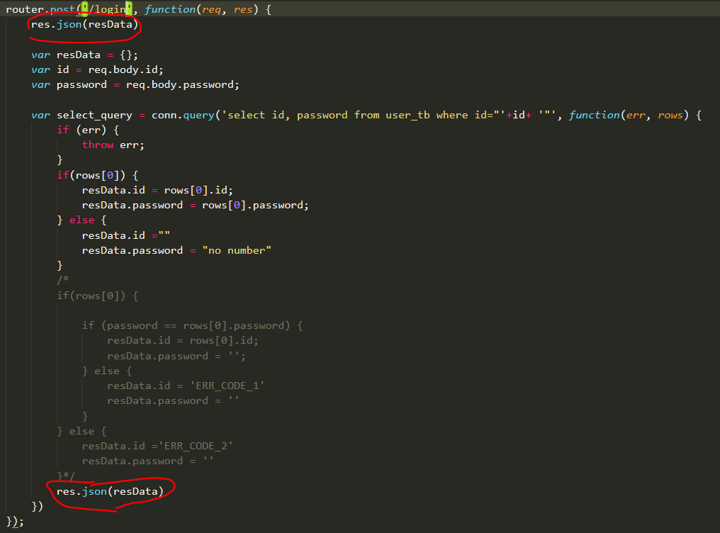테스트를 위해 첫줄에서 res를 보내고 또 마지막 에 res를 json으로 전송한다.. ㅎㅎㅎ
