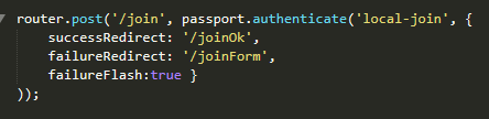 그리고 passport.use('local-join', new LocalStrategy ( ~~~~ 에서 보면