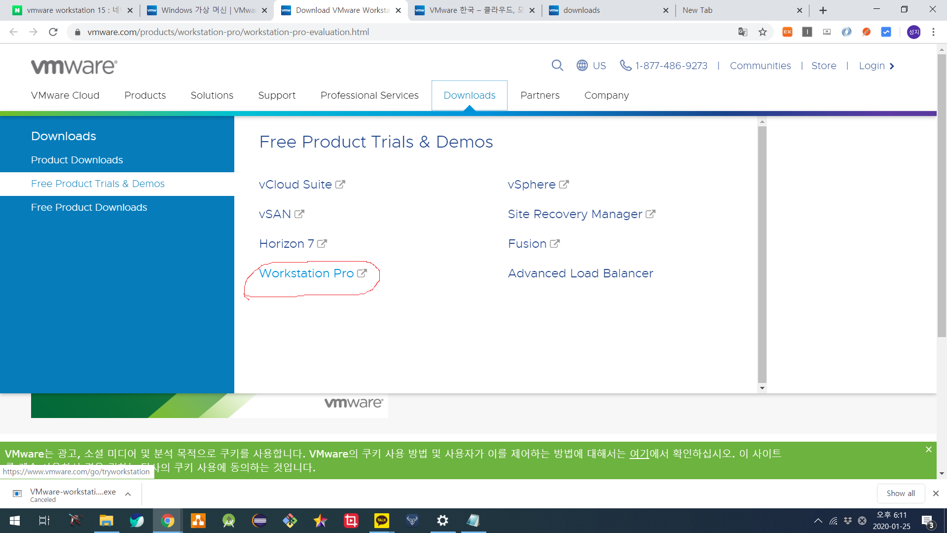 먼저 아래 링크로 들어가사 VMWare를 설치해보자.