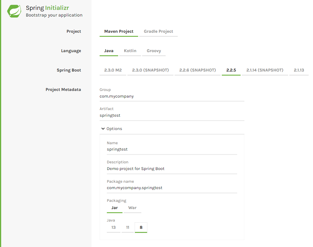 여기서 스캡홀딩된 프로젝트를 하나 만들어서 STS나 Intellij IDEA에서 프로젝트를 불러오면된다.