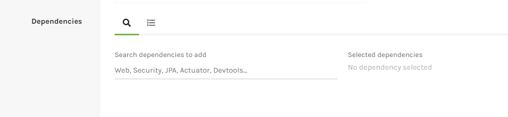 여기는 우리가 의존성을 주입할 녀석들을 입력해주면된다. 간단하게 Spring MVC를 위한 의존성만 주입해보자.