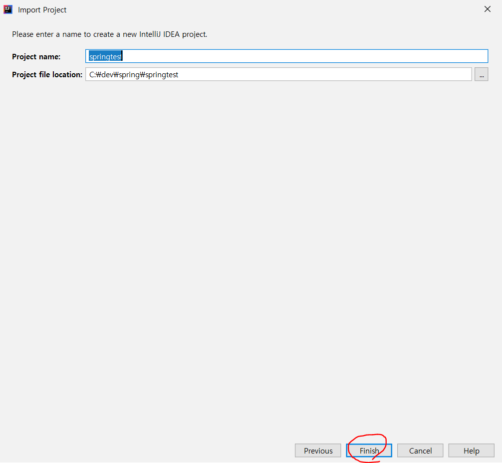 마지막으로 Project 이름과 위치를 지정해주고. finish를 누르자.