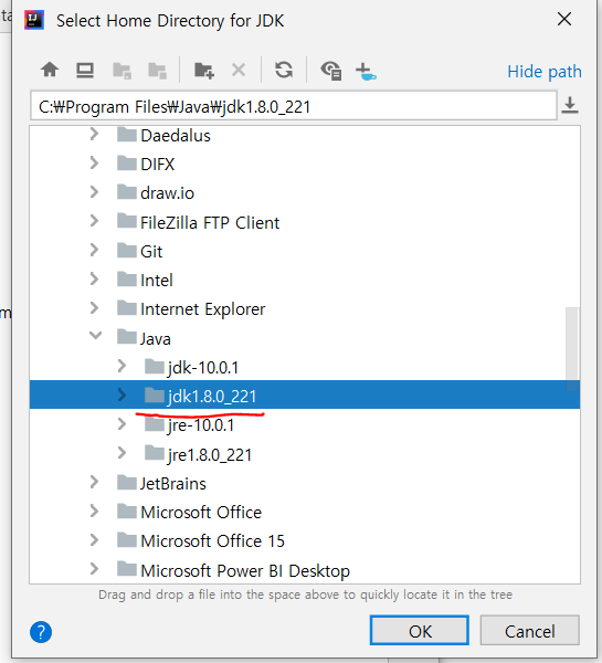 설치된 것중 JDK 8 폴더를 선택하고!! OK 를 누르자.