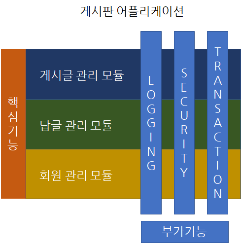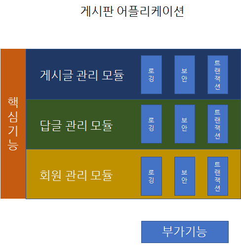 우리는 이런 부가기능들을 핵심기능에서 분리하여 모듈화 할 수 있다.