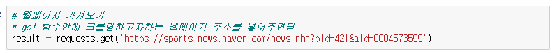 실제로 접근할 페이지의 url 을 넣어주면 된다. ㅎㅎ 나는 실제 네이버 뉴스기사에 대한 url을 넣었다.
