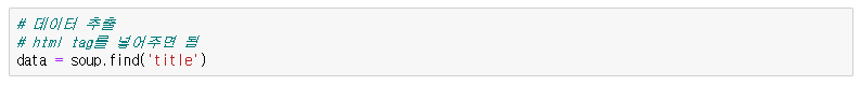 html 내부에 보면 각종 태그 값으로 페이지가 구성되는걸 아는데, 본인이 크롤링하기를 원하는 태그명을 넣어주면 된다.