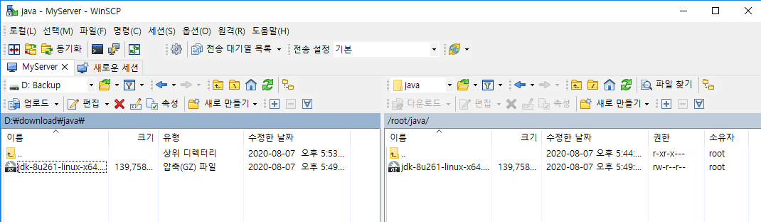 다운받은 파일을 리눅스로 옮겨주자. 나는 WinSCP 라는 프로그램을 이용해서 옮겼다.