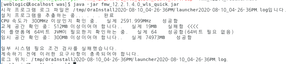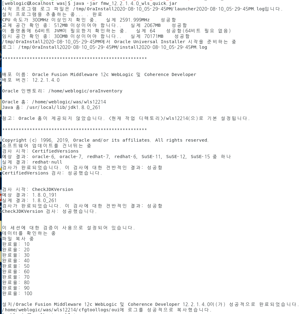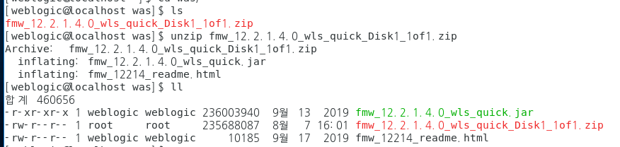 그리고 /home/weblogic/was/ 디렉토리를 만든 뒤, 압축파일을 다시 옮겨주고