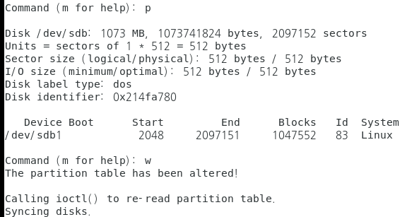 Last sector : [enter] -> 끝 섹터 번호 입력 (1개 이기 때문에 입력안해도 됨)