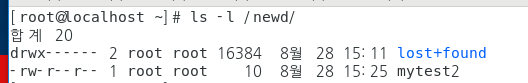 이번에는 포맷이 완료된 /dev/sdb1 장치를 /newd 디렉터리에 마운트 해보자.