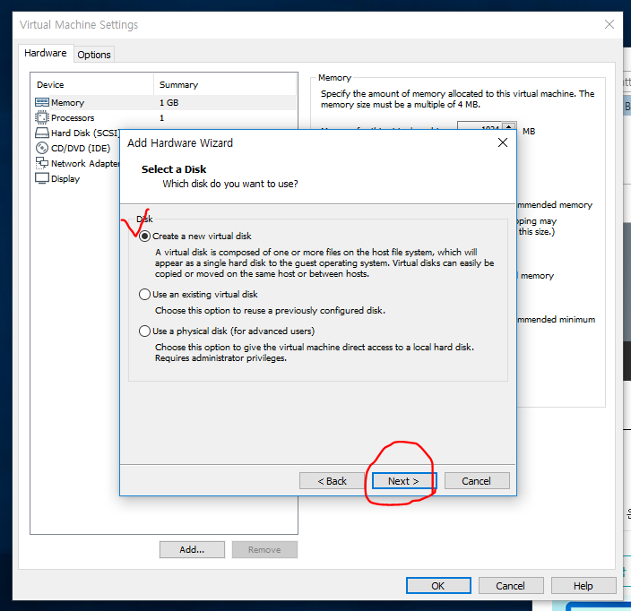 또 하드디스크를 추가하기도 한다. 오늘은 하드디스크를 한개 추가하는 실습을 해보려고 한다.