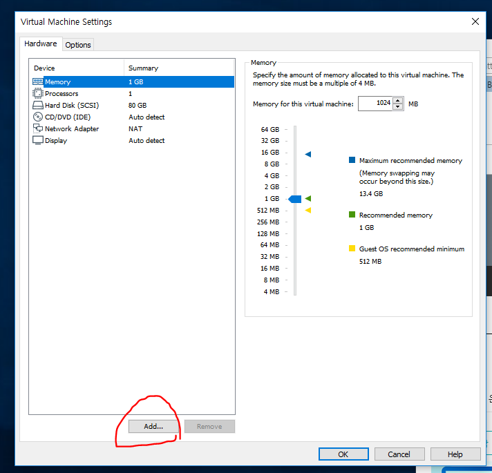 자 이제 본격적으로 하드디스크를 추가해보자.