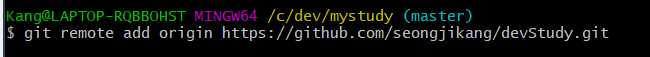 (만약에 origin 말고 다른 이름으로 연결이 되어 있으면 삭제해주고 다시 연결해줘도 된다.
