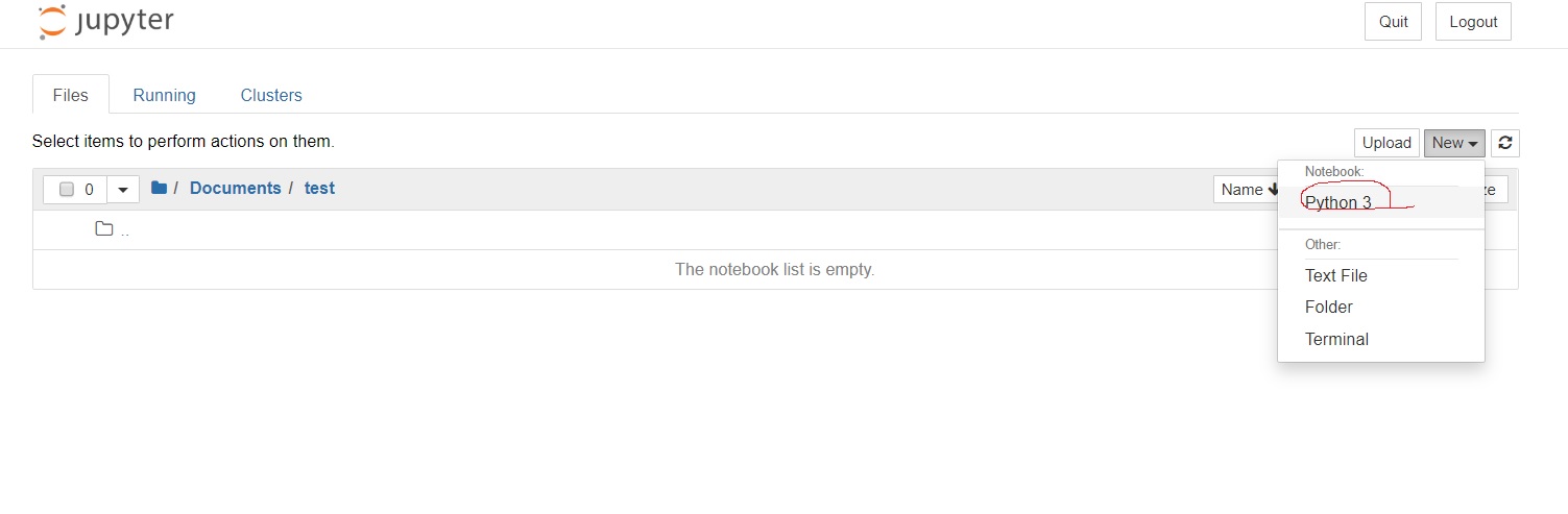 먼저 Jupyter Notebook 에서 python 파일을 하나 만들어보자.