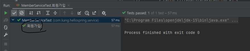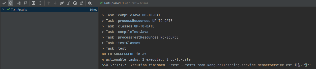 그러고 다시 테스트를 수행해보면 , 아래 그림처럼 수행한 테스트 목록이 출력이 된다.