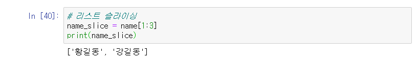 리스트도 배열처럼 되어있다보니 문자열처럼 슬라이싱이 가능하다. 슬라이싱이 궁금하면 지난 포스팅을 보고오자ㅎㅎ
