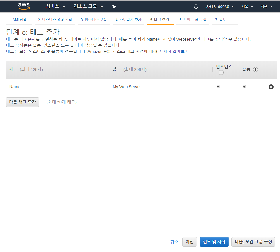 자 태그 추가해주고 ! 정말 중요한 보안 그룹 구성을 하러가보자.