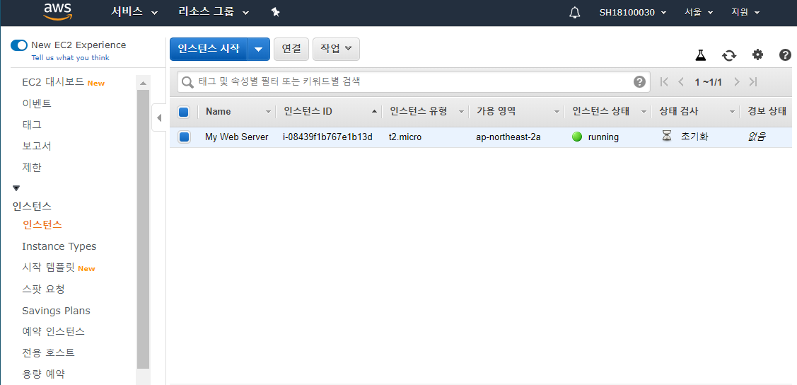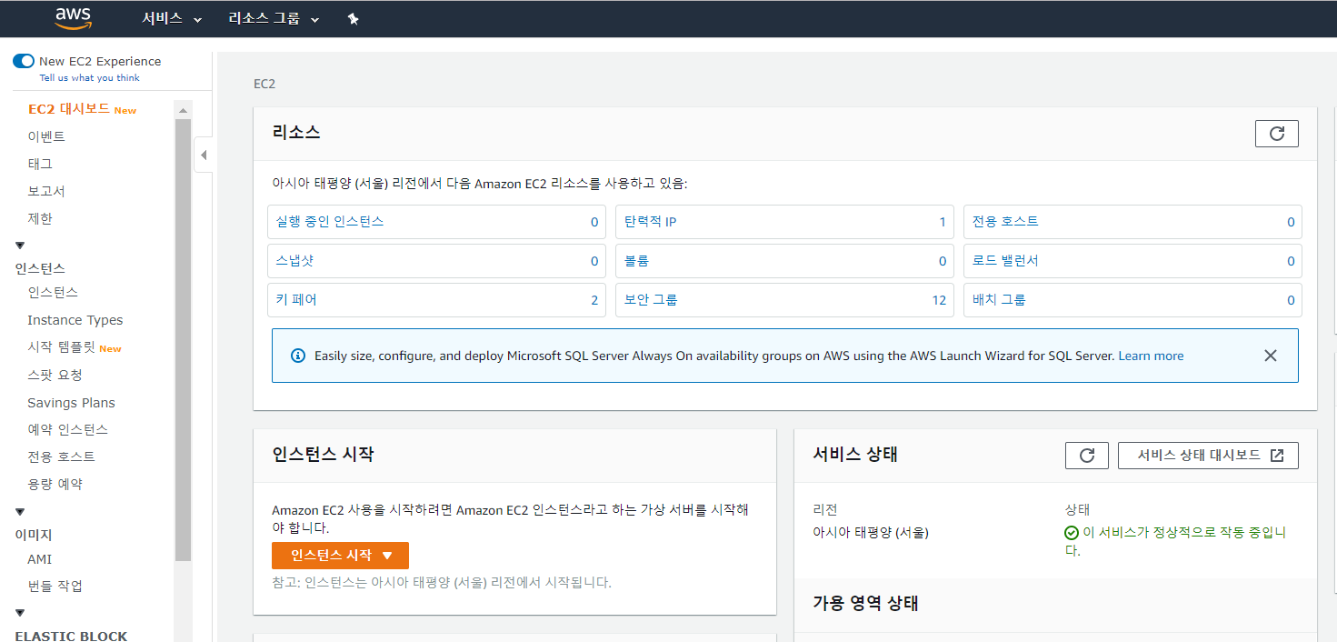 자 먼저 EC2 대시보드에 접속해보자.