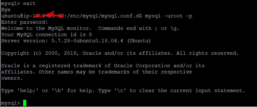 aws 에서 ec2 인스턴스를 ubuntu로 생성하고 mysql을 설치했는데,
