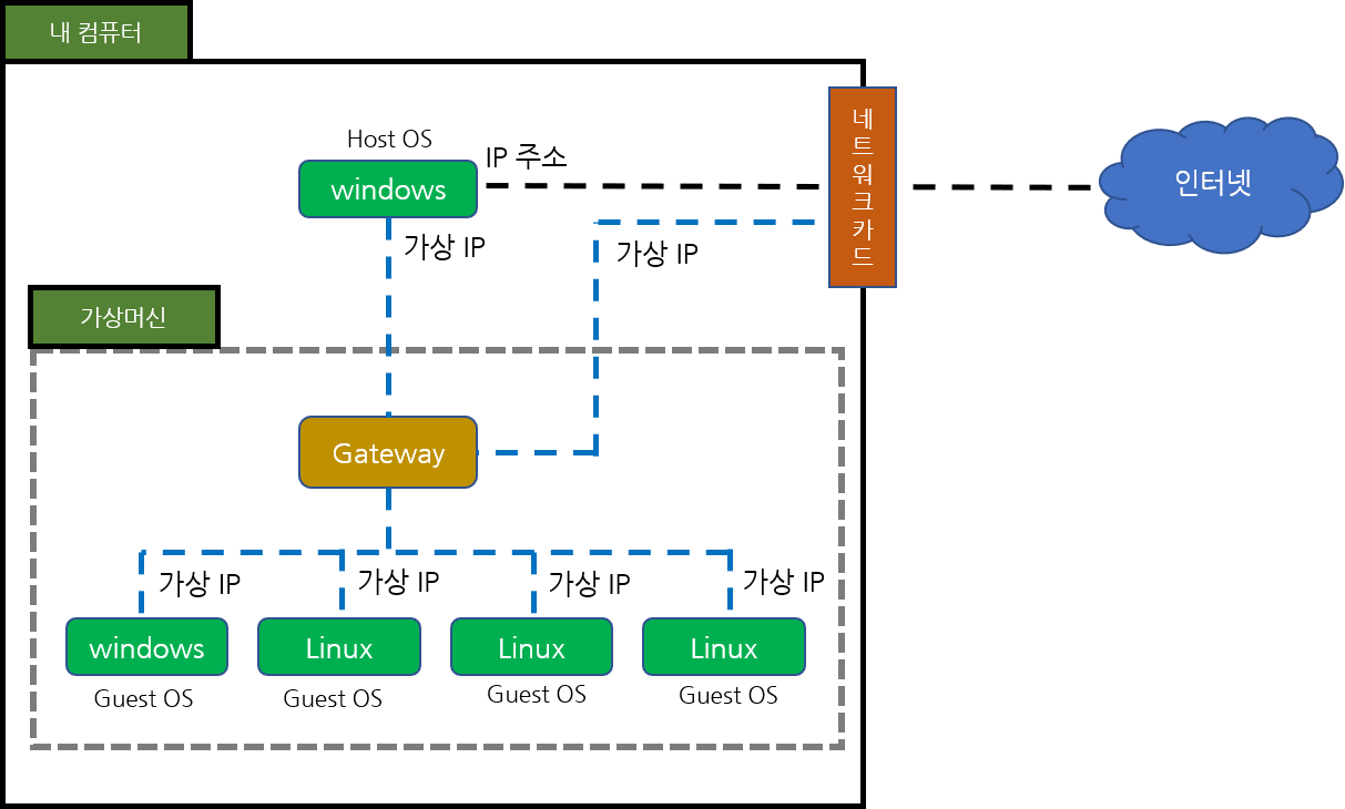 가상머신을 설명하기 앞서 내가 가지고 있는 컴퓨터가 어떻게 네트워크와 연결되는지 아주 간단하게 그림으로 설명해 보겠다.