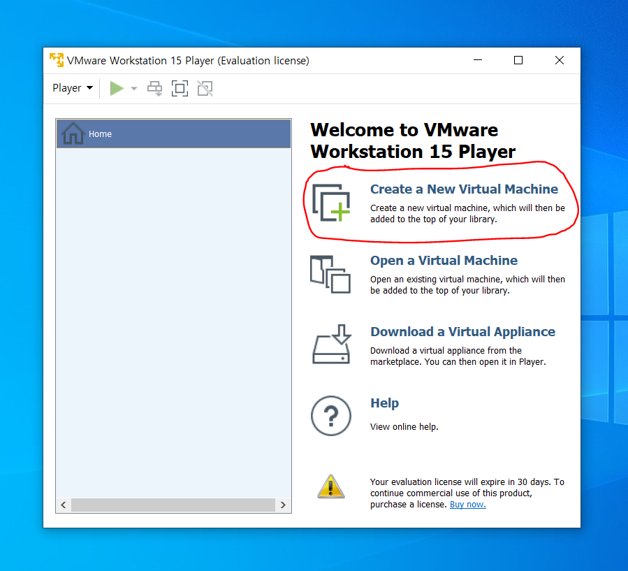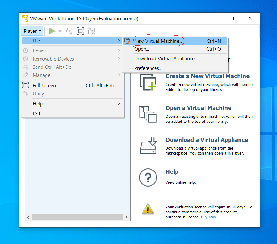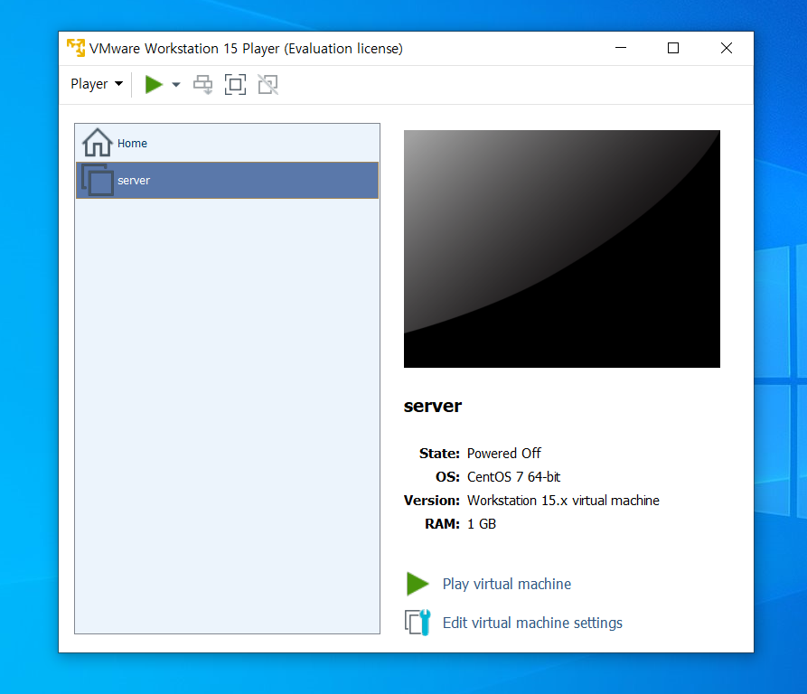 자 먼저 이전 포스팅에서 설치한 VMWare Player를 실행해보자.